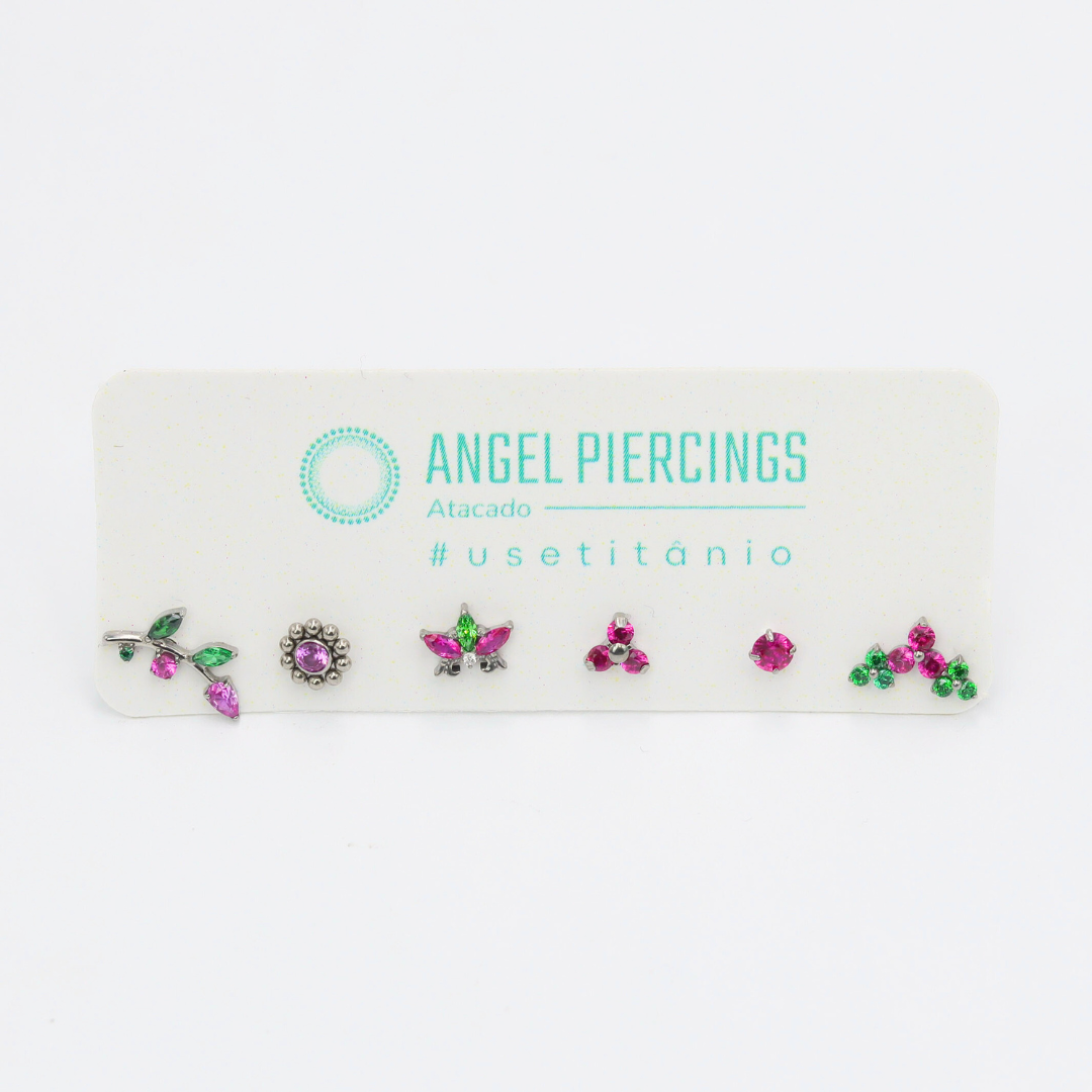 Push Pin: O sistema de fechamento push pin segura o piercing através de um pino fino e ligeiramente curvado que se encaixa dentro de um tubo oco. A leve curvatura ou pressão entre o pino e o tubo cria tensão, mantendo o pino firmemente no lugar sem a necessidade de rosca, garantindo segurança e facilidade de uso.