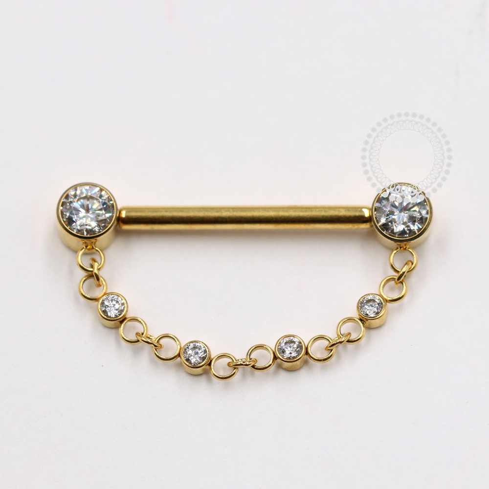 HASTE: 14mm / 16mm ADEREÇO: 4mm TRAVA / ROSCA: Push Pin Somente Um Lado MATERIAL: Titânio PVD Gold GARANTIA: 1 ano