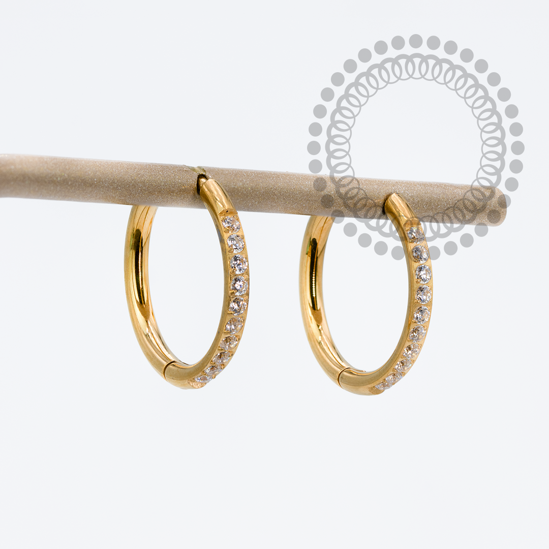 Titânio PVD Gold: O titânio PVD gold é um material altamente resistente, ideal para piercings devido à sua durabilidade e segurança. Ele recebe um revestimento dourado através do processo PVD (Physical Vapor Deposition), que garante cor intensa e longa duração. Hipoalergênico, é perfeito para peles sensíveis, evitando irritações. Além disso, é elegante e de alto desempenho.