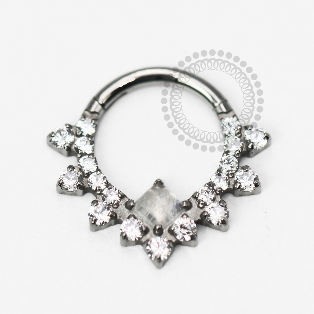 Descrição: Ideal para cartilagem, lóbulo, helix,tragus, septo, daith, aba nasal, entre outros piercings, oferecendo um ajuste confortável e seguro. É uma joia cheia de estilo.