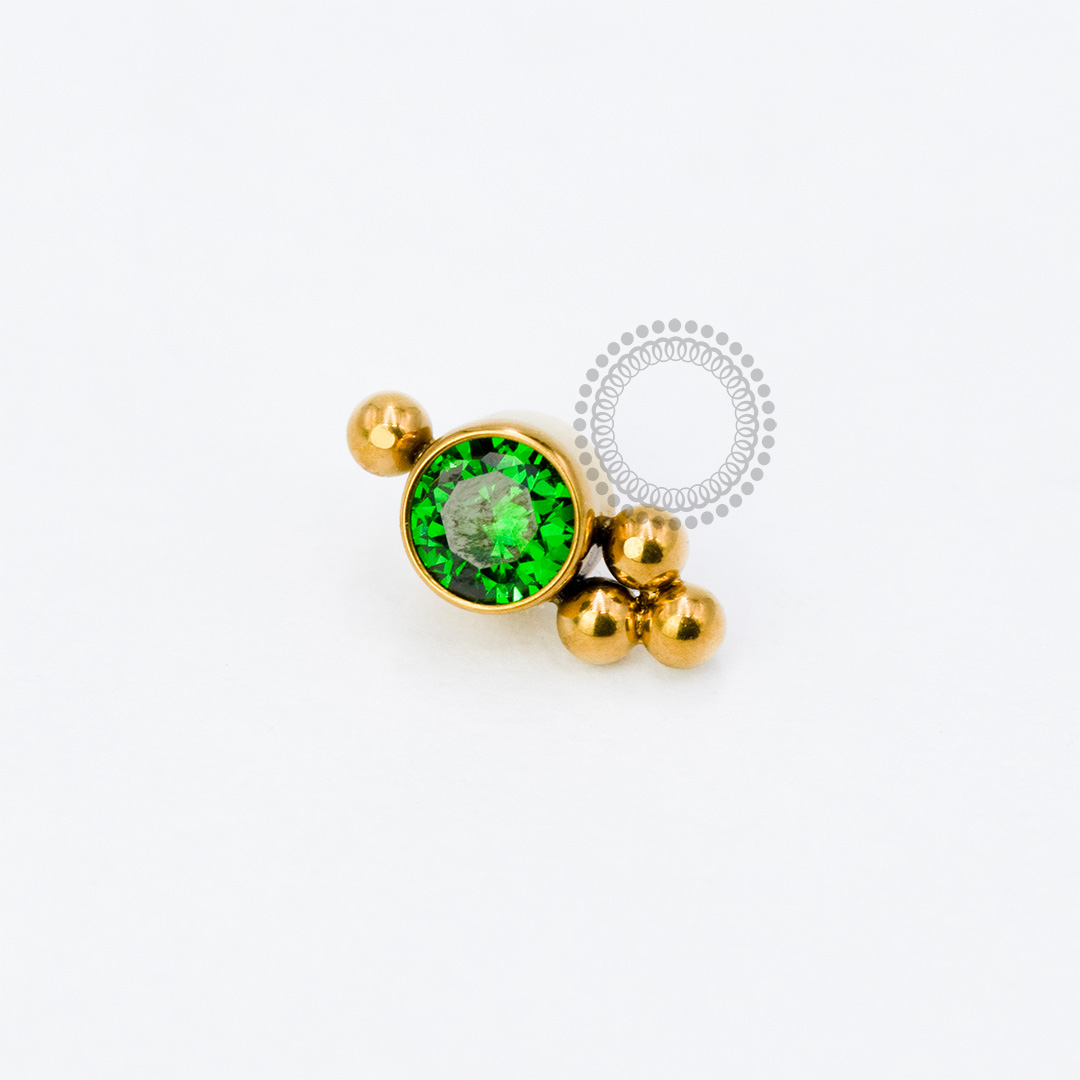 Titânio PVD Gold: O titânio PVD gold é um material altamente resistente, ideal para piercings devido à sua durabilidade e segurança. Ele recebe um revestimento dourado através do processo PVD (Physical Vapor Deposition), que garante cor intensa e longa duração. Hipoalergênico, é perfeito para peles sensíveis, evitando irritações. Além disso, é elegante e de alto desempenho.