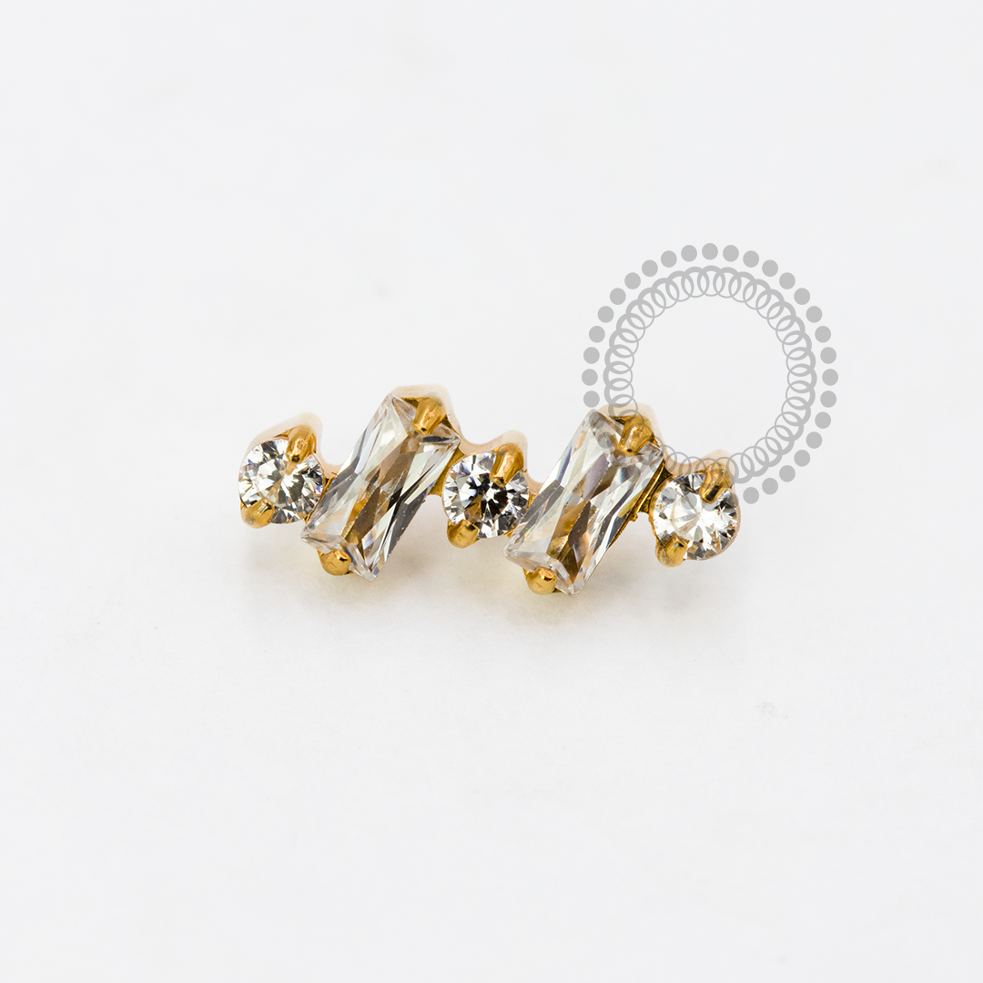TN1934 Topo Cluster 2 Baguetes 3 CZ Titânio PVD Gold