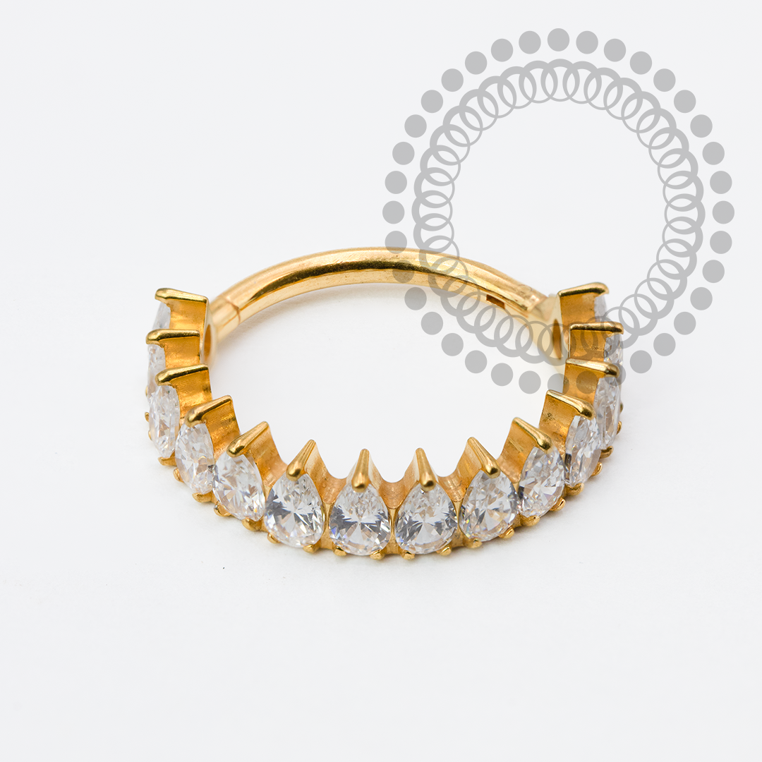 Descrição: Ideal para septo, daith, cartilagem, lóbulo, helix, entre outros piercings, oferecendo um ajuste confortável e seguro. É uma joia cheia de estilo.