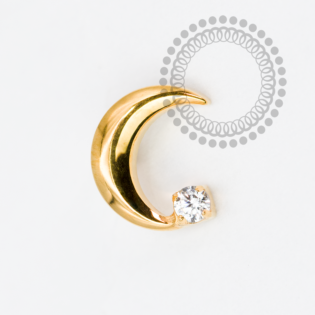 TN1992 Topo Lua Crescente CZ Titânio PVD Gold