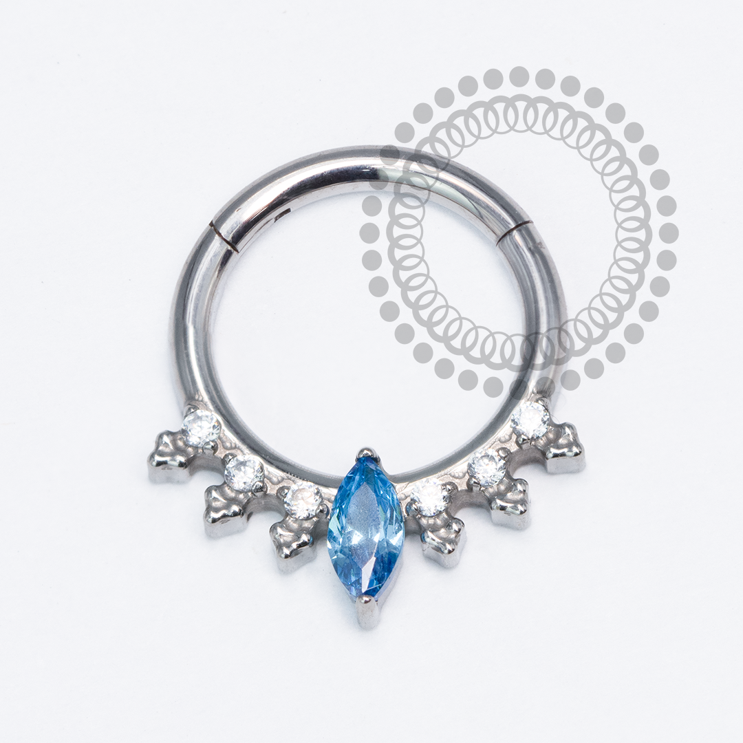 Descrição: Ideal para septo, daith, cartilagem, lóbulo, helix, entre outros piercings, oferecendo um ajuste confortável e seguro. É uma joia cheia de estilo.