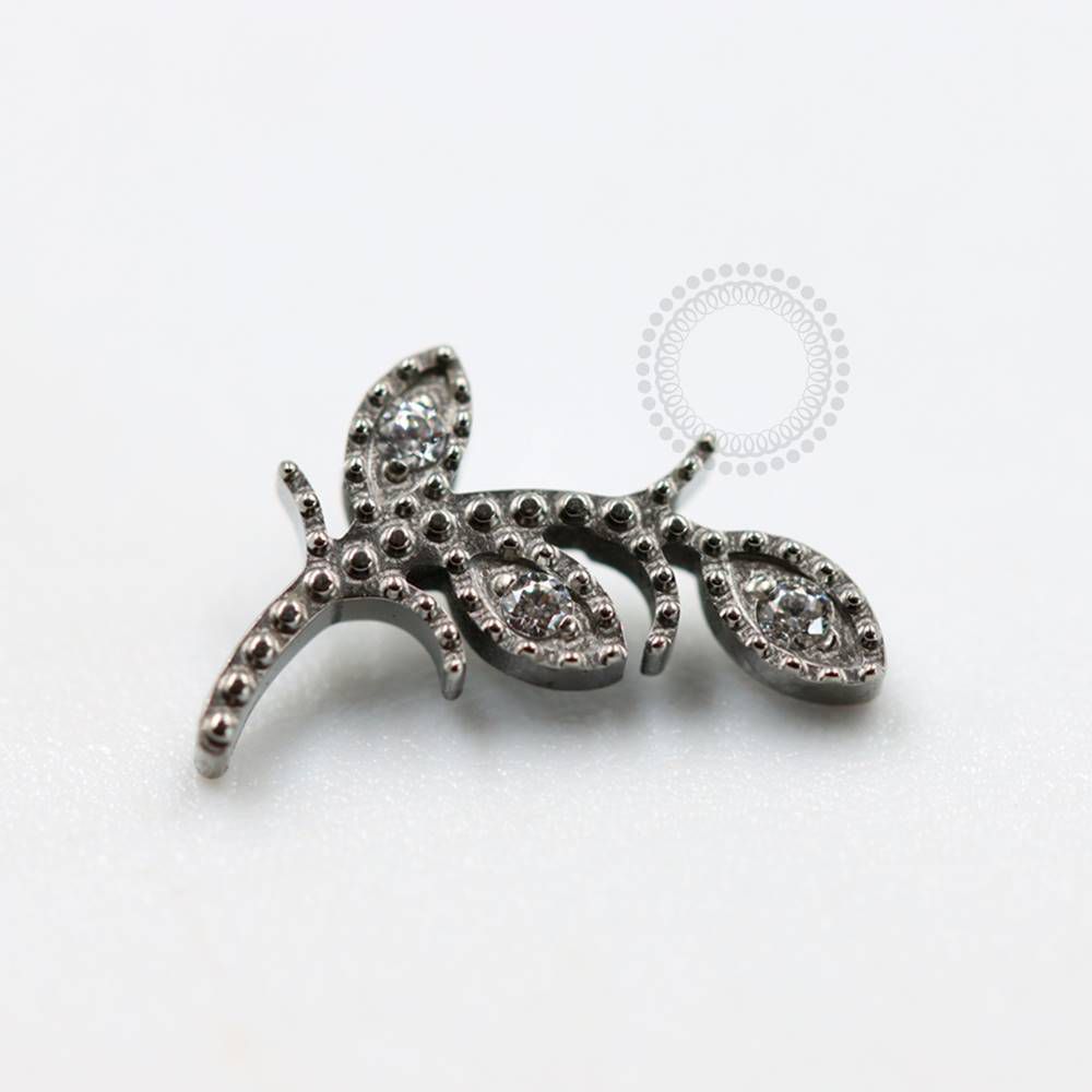 TN830 Topo Galho Texturizado 3 Folhas CZ Titânio ASTM F136 (OUTLET)